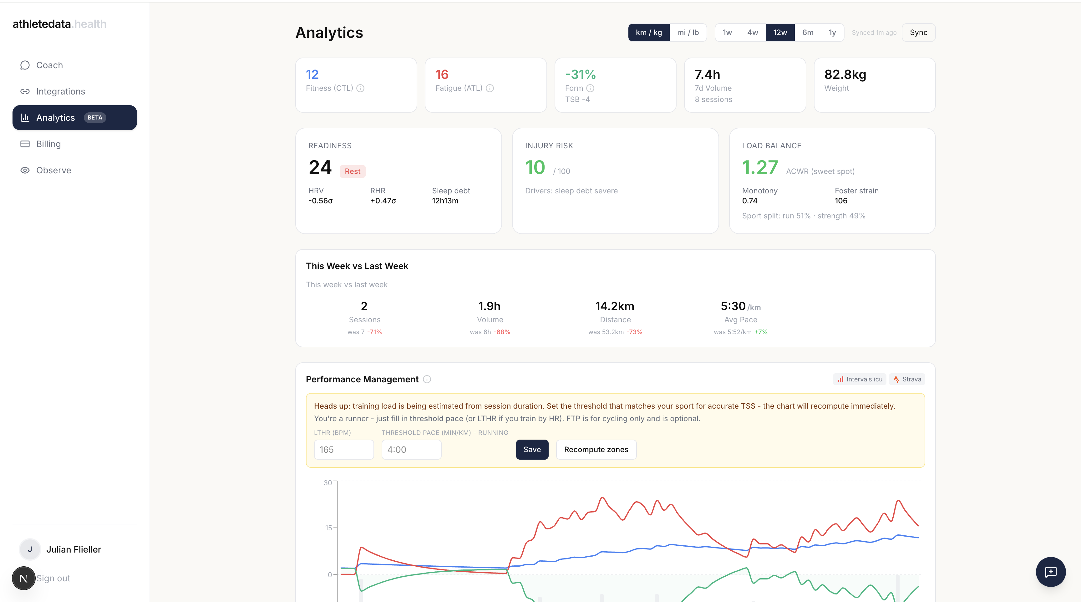Would love feedback - try it at athletedata.health (free trial ofc, no strings attached)